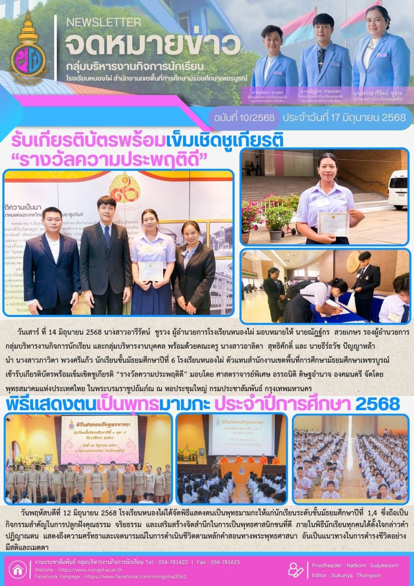จดหมายข่าวประชาสัมพันธ์กลุ่มบริหารงานกิจการนักเรียน ฉบับที่ 10/2568