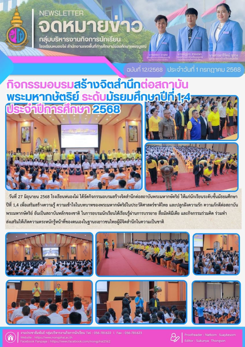 จดหมายข่าวประชาสัมพันธ์กลุ่มบริหารงานกิจการนักเรียน ฉบับที่ 12/2568