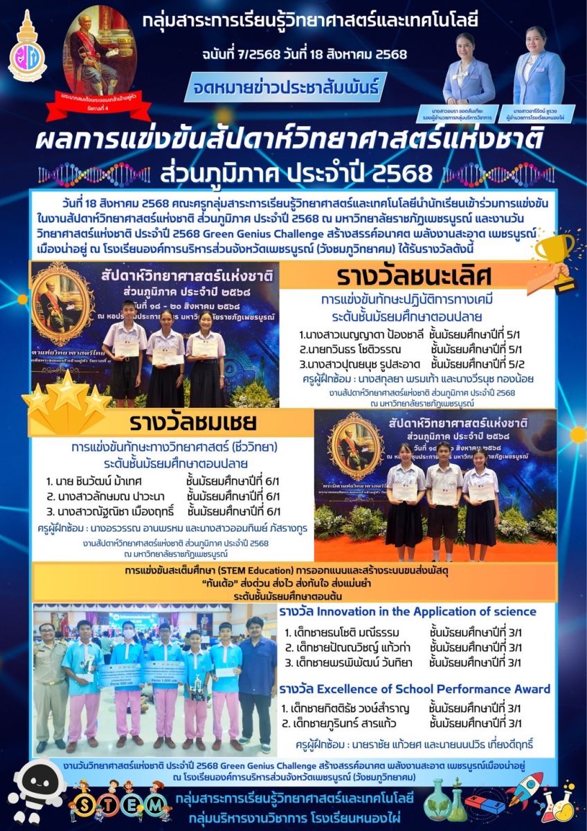 ผลการแข่งขันสัปดาห์วิทยาศาสตร์แห่งชาติ ส่วนภูมิภาค ประจำปี 2568