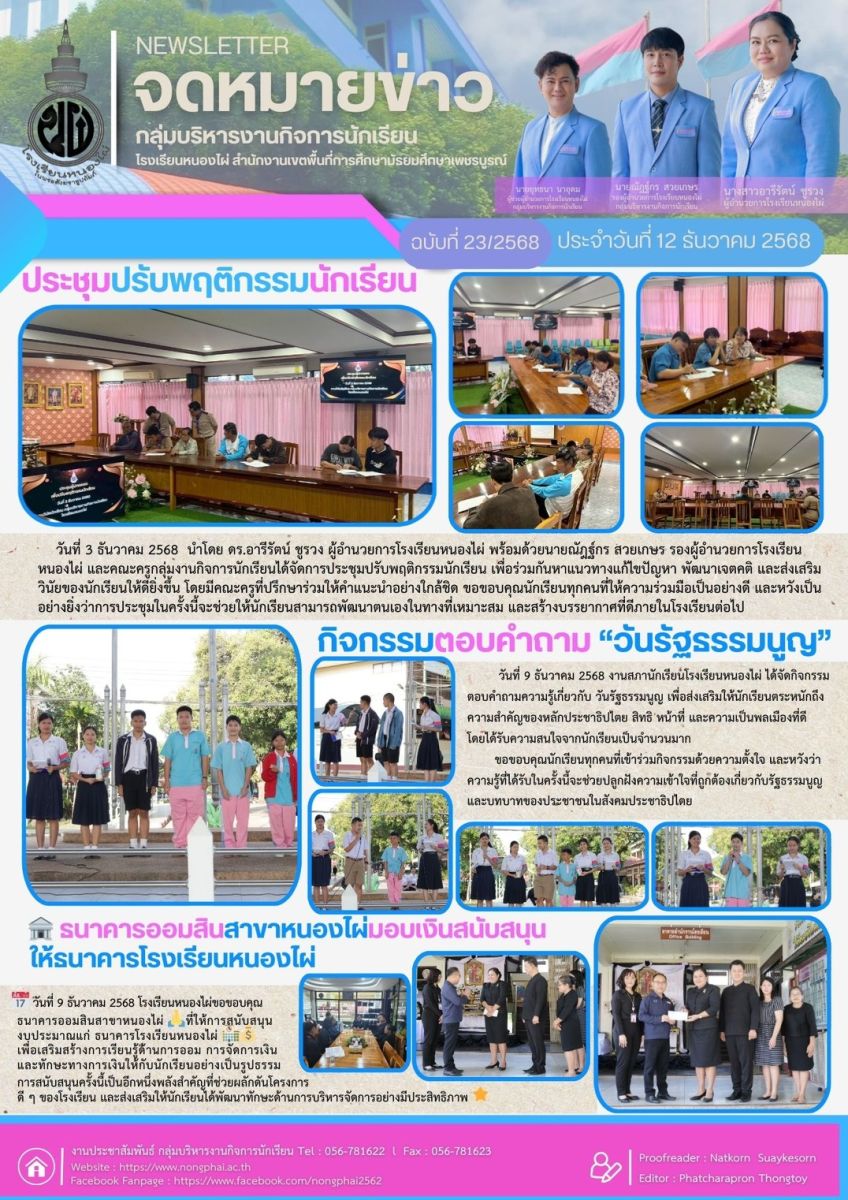 จดหมายข่าวประชาสัมพันธ์กลุ่มบริหารงานกิจการนักเรียน ฉบับที่ 23/2568