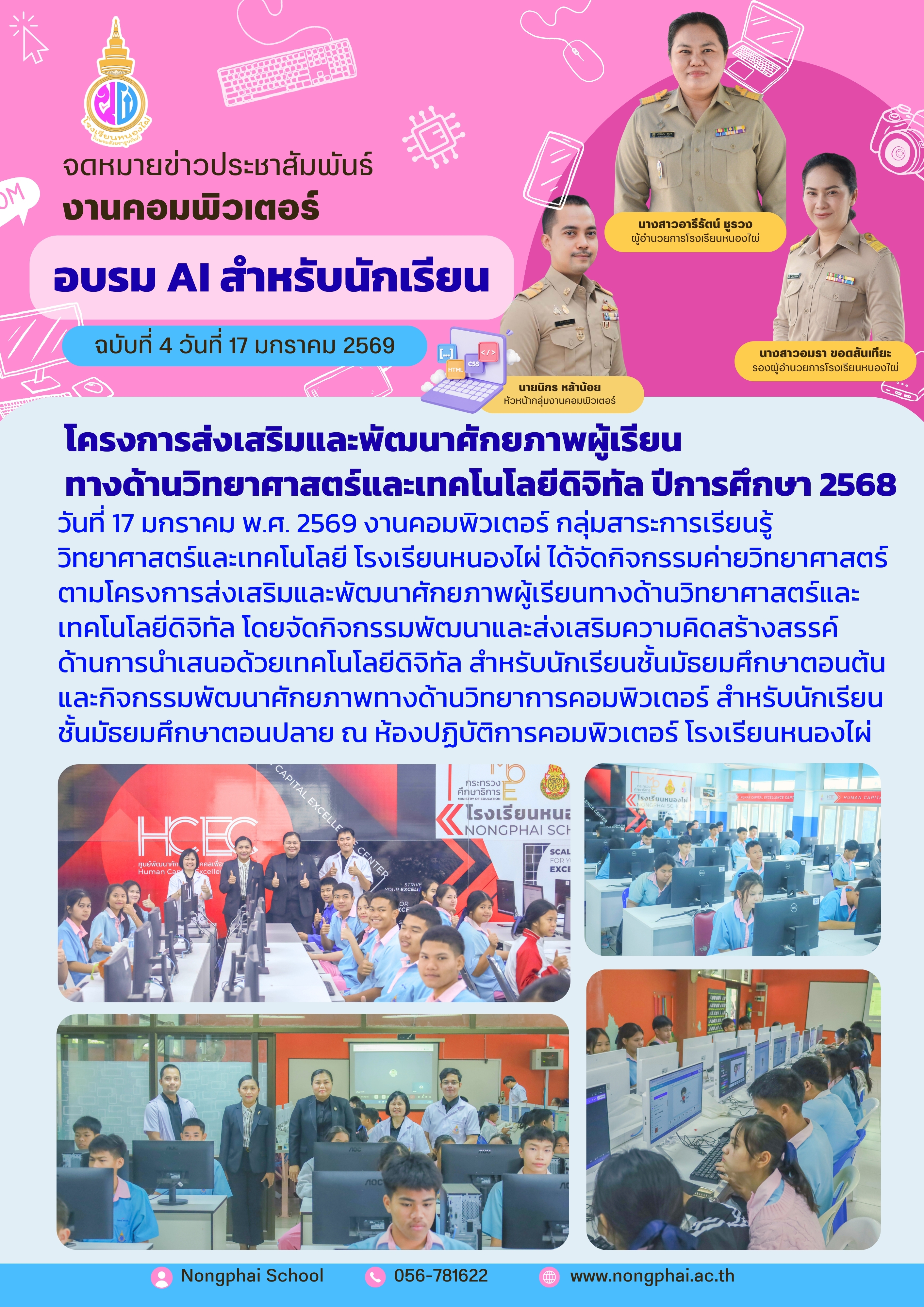 ข่าวประชาสัมพันธ์ : เผยแพร่โดย : Webmaster โรงเรียนหนองไผ่ View : 114