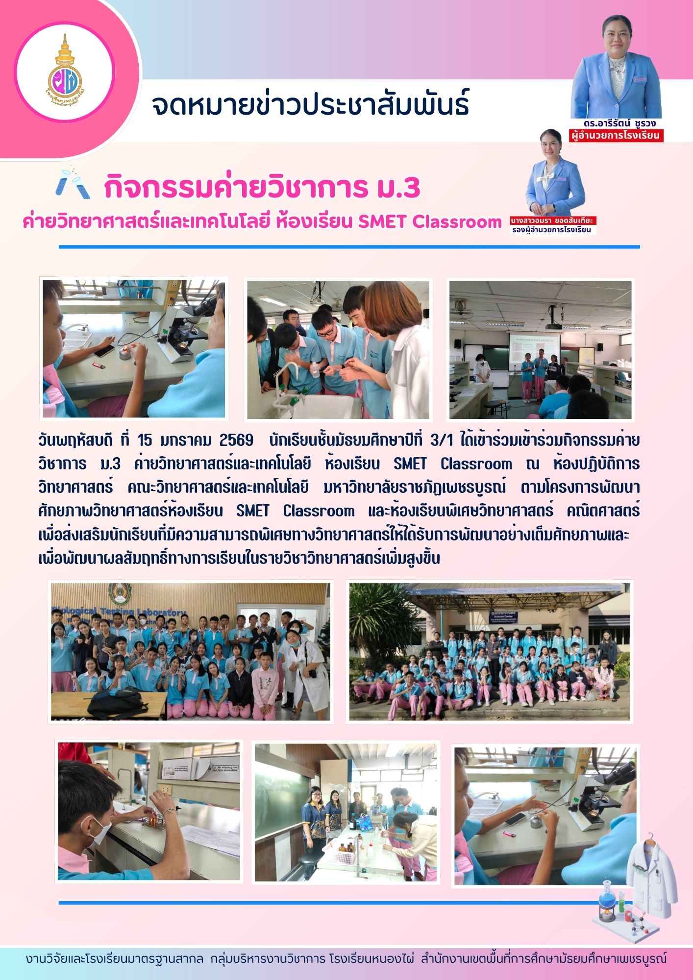 กิจกรรมค่ายวิชาการ ม.3 SMET Classroom วันพฤหัสบดีที่ 15 มกราคม พ.ศ. 2569