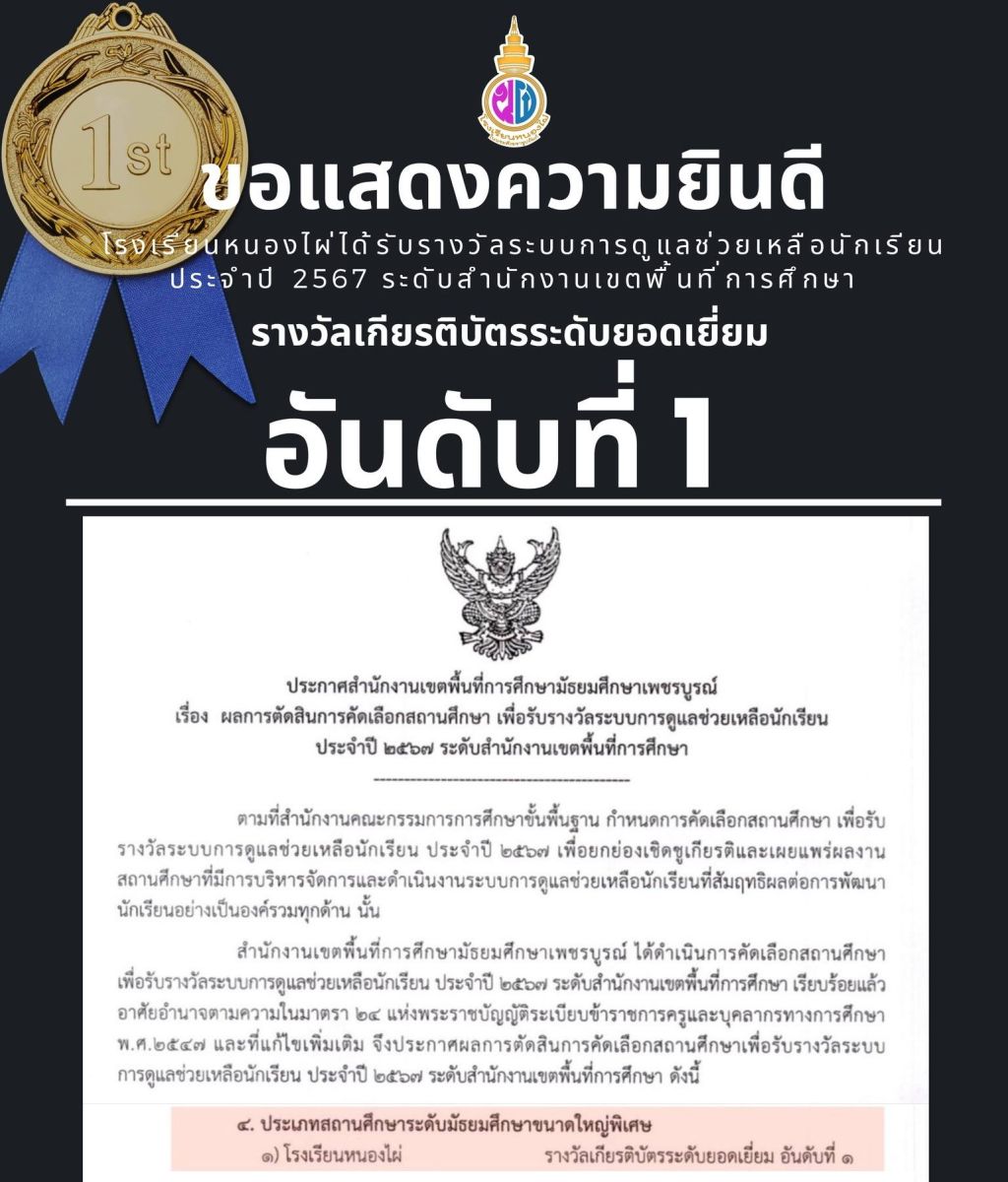 ได้รับรางวัลเกียรติบัตรระดับยอดเยี่ยม อันดับที่ 1 เรื่อง ระบบดูแลช่วยเหลือนักเรียน ประจำปี 2567 ระดับเขตพื้นที่