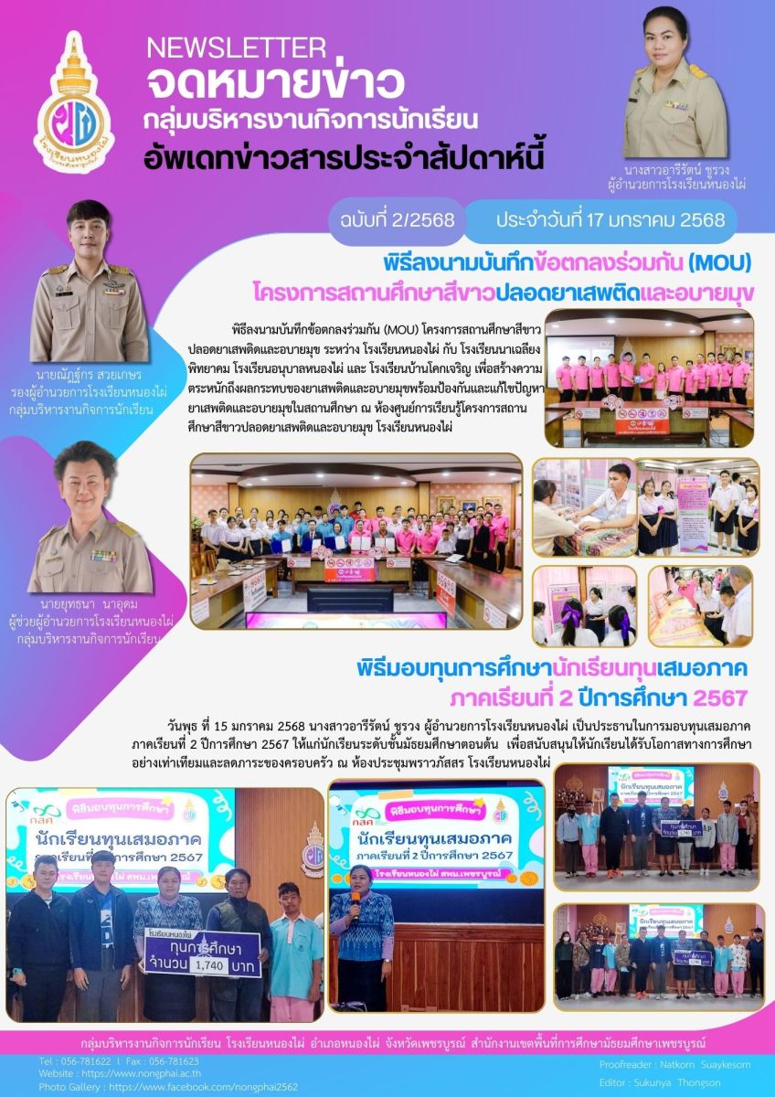 จดหมายข่าวประชาสัมพันธ์กลุ่มบริหารงานกิจการนักเรียน ฉบับที่ 2/2568 วันที่ 17 มกราคม พ.ศ. 2568