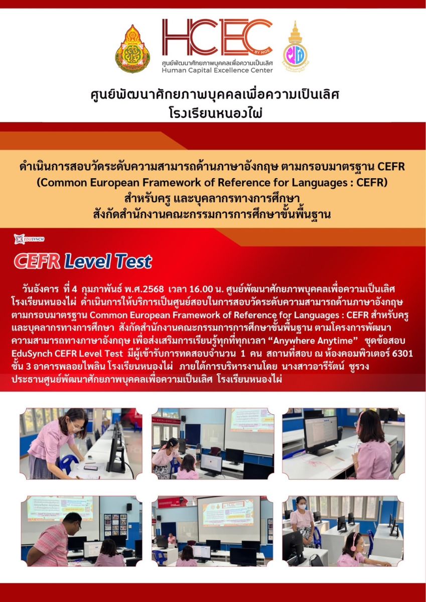 ศูนย์ HCEC โรงเรียนหนองไผ่ จัดสอบวัดระดับความสามารถด้านภาษาอังกฤษตามกรอบมาตรฐาน CEFR ในโครงการ Anywhere Anytime