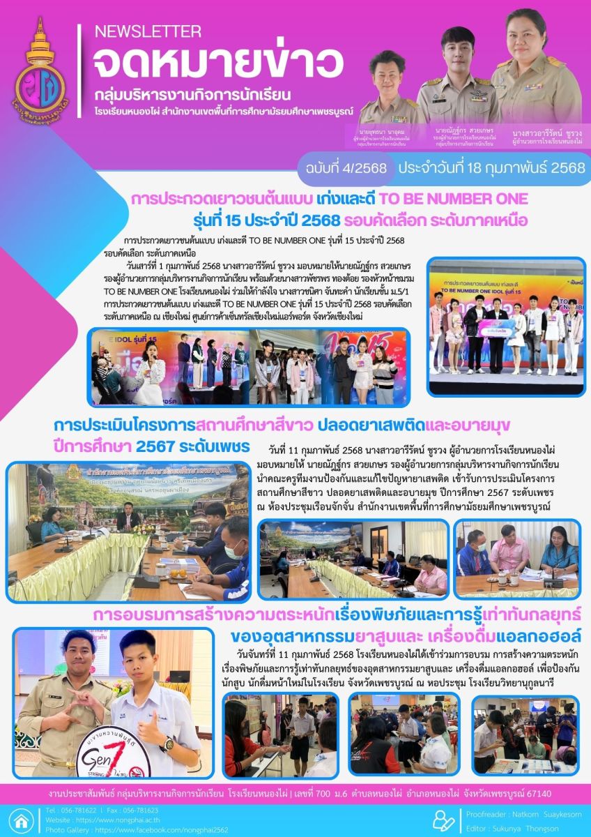 จดหมายข่าวประชาสัมพันธ์กลุ่มบริหารงานกิจการนักเรียน ฉบับที่ 4/2568 วันที่ 18 กุมภาพันธ์ พ.ศ. 2568