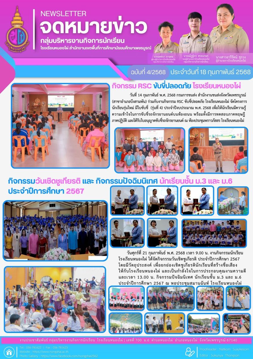 จดหมายข่าวประชาสัมพันธ์กลุ่มบริหารงานกิจการนักเรียน ฉบับที่ 5/2568 วันที่ 18 กุมภาพันธ์ พ.ศ. 2568