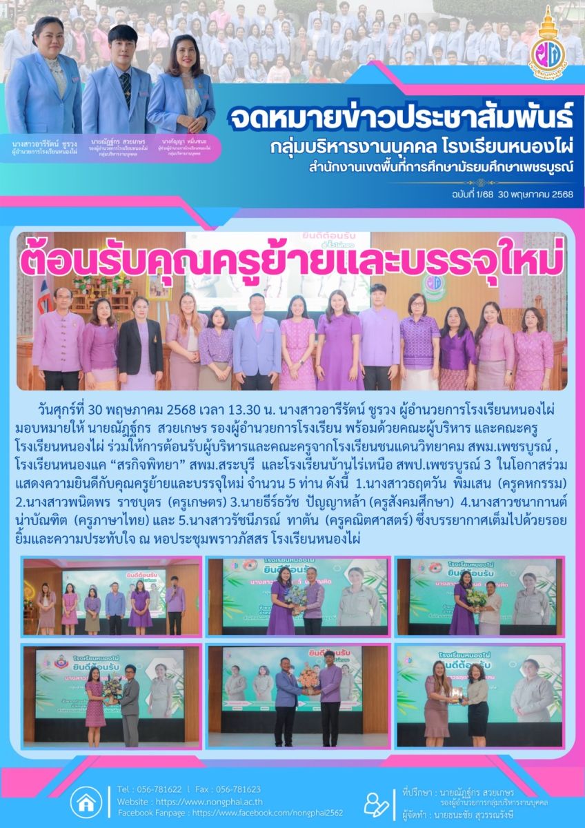 โรงเรียนหนองไผ่ อำเภอหนองไผ่ จังหวัดเพชรบูรณ์ สำนักงานเขตพื้นที่การศึกษามัธยมศึกษาเพชรบูรณ์ | ที่อยู่ไปรษณีย์อิเล็กทรอนิกส์ saraban@nongphai.ac.th |  หมายเลขโทรศัพท์ 0-5678-1622 หมายเลขโทรสาร  0-5678-1623
