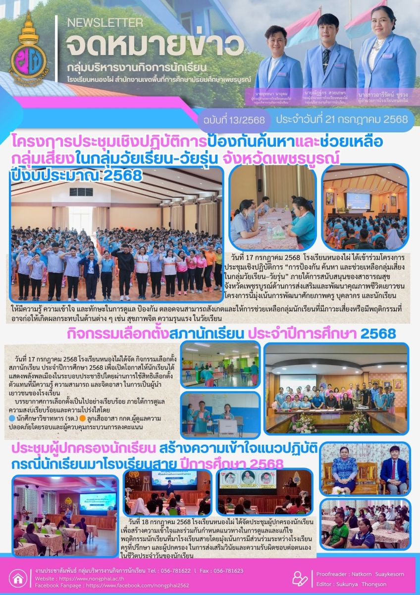 จดหมายข่าวประชาสัมพันธ์กลุ่มบริหารงานกิจการนักเรียน ฉบับที่ 13/2568