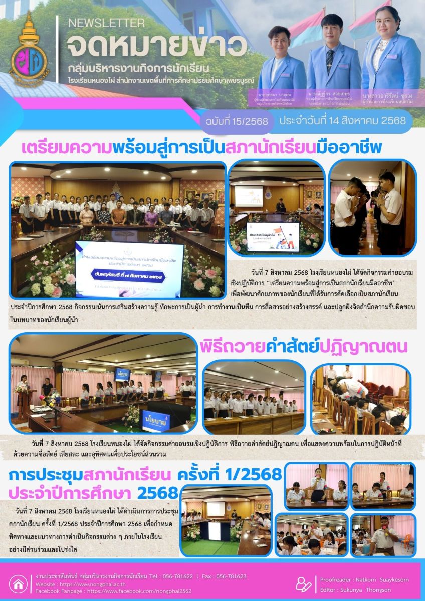 จดหมายข่าวประชาสัมพันธ์กลุ่มบริหารงานกิจการนักเรียน ฉบับที่ 15/2568