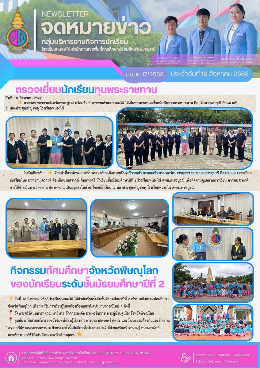 จดหมายข่าวประชาสัมพันธ์กลุ่มบริหารงานกิจการนักเรียน ฉบับที่ 17/2568