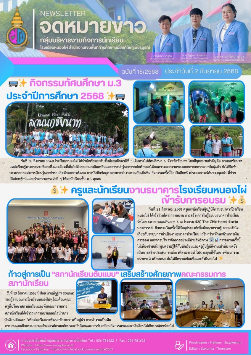 จดหมายข่าวประชาสัมพันธ์กลุ่มบริหารงานกิจการนักเรียน ฉบับที่ 18/2568