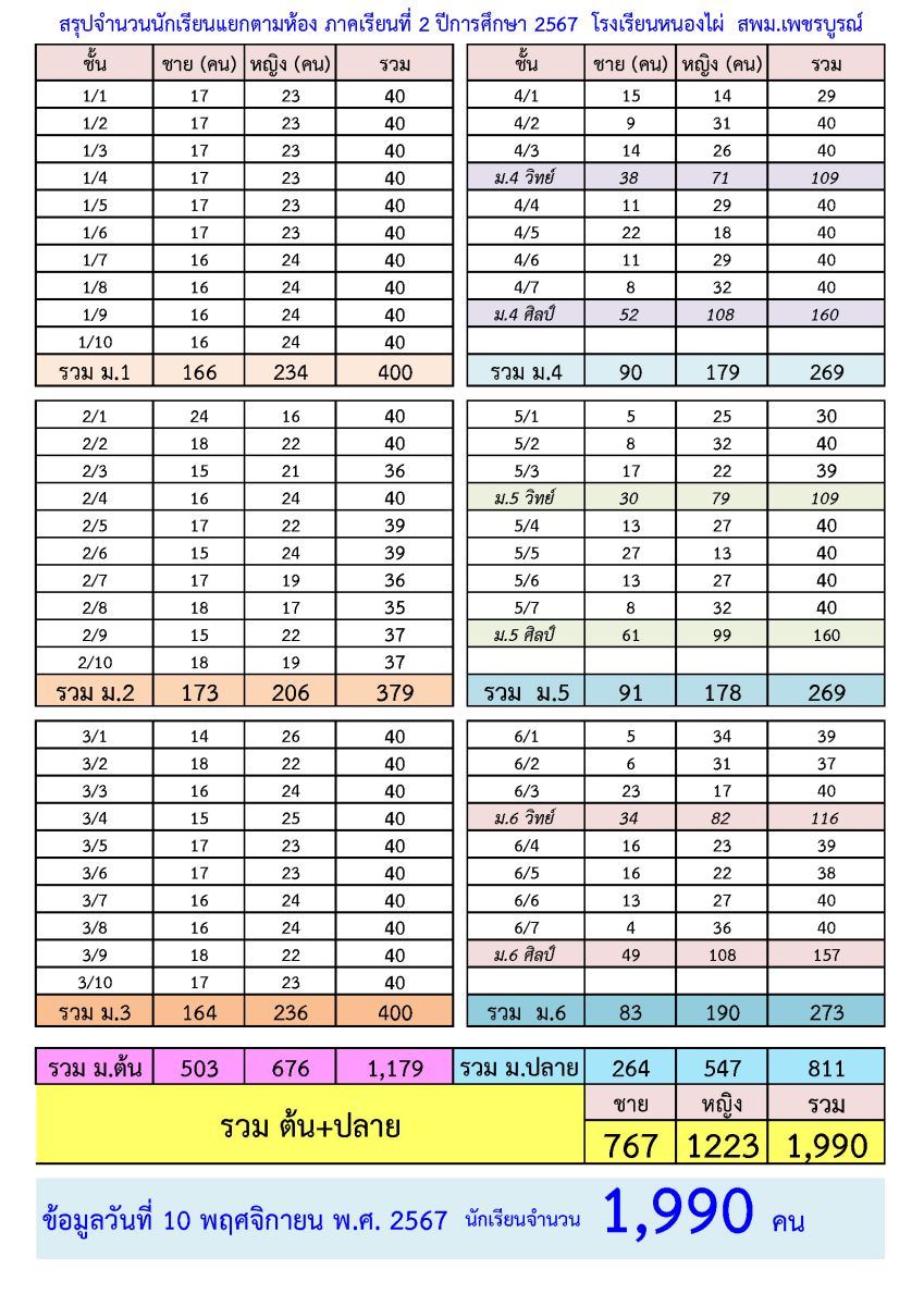 จำนวนนักเรียนโรงเรียนหนองไผ่