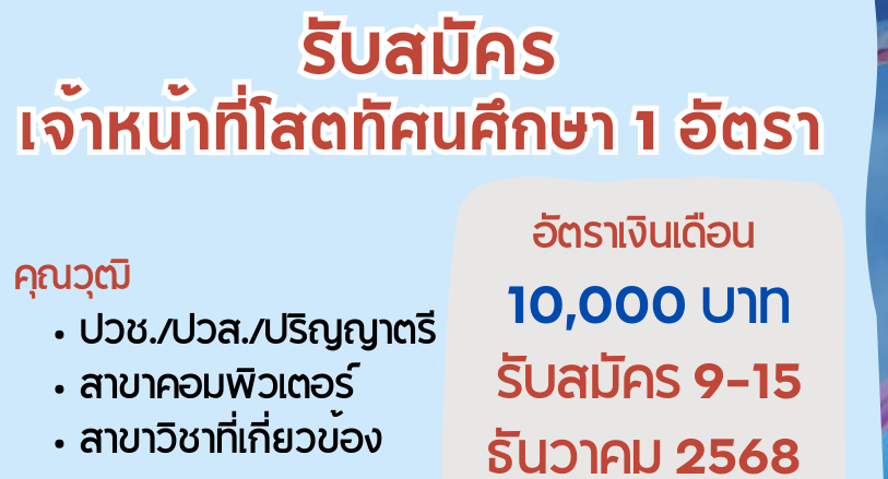 [2025-12-09] ประกาศโรงเรียนหนองไผ่ เรื่อง รับสมัครบุคคลเพื่อคัดเลือกเป็นลูกจ้างชั่วคราว ตำแหน่ง เจ้าหน้าที่โสตทัศนศึกษา View : 46