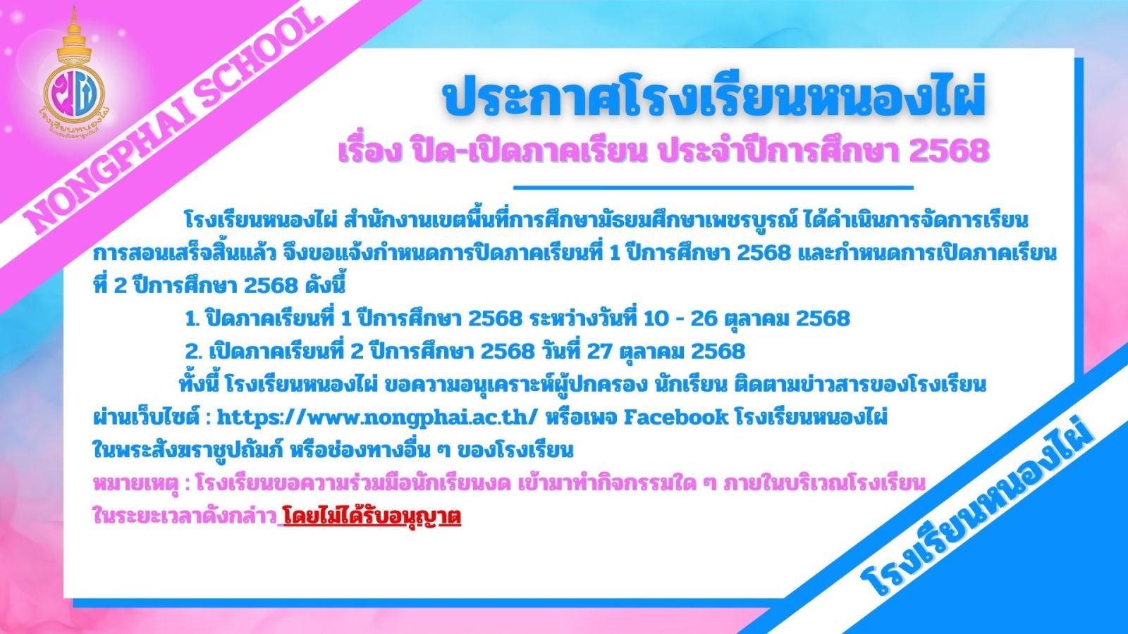 [2025-07-25] ประกาศโรงเรียนหนองไผ่ เรื่อง การปิดเรียนด้วยกรณีพิเศษ View : 132
