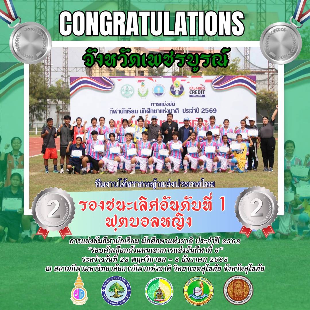 การแข่งขันกีฬานักเรียน นักศึกษาแห่งชาติ ประจำปี 2569 ฟุตบอล (ชาย-หญิง) รอบคัดเลือกนักกีฬาตัวแทนระดับเขตการแข่งขันกีฬาที่ 6 ระหว่างวันที่ 28 พฤศจิกายน ถึงวันที่ 8 ธันวาคม 2568 ณ สนามกีฬามหาวิทยาลัยการกีฬาแห่งชาติ วิทยาเขตสุโขทัย
