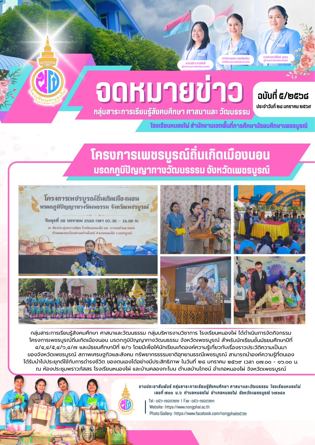 นางสาวอิสรีย์ จันทร์ธนภิเชษฐ นักเรียนชั้น ม.6/1 โรงเรียนหนองไผ่ ได้รับรางวัลเด็กและเยาวชนกิจกรรม "วัฒนธรรมวินิต" ประจำปี 2569 ระดับจังหวัดเพชรบูรณ์
