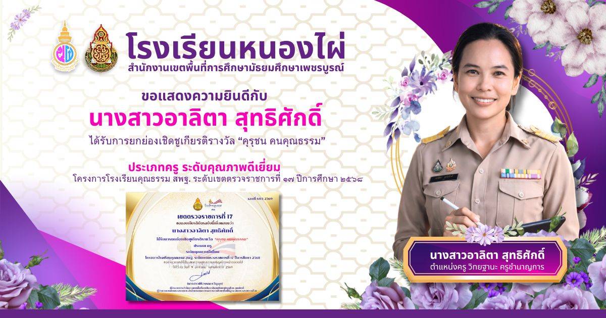 ขอแสดงความยินดี กับคุณครูโรงเรียนหนองไผ่ ที่ได้รับการคัดเลือกให้ได้รับรางวัล "ครูดีศรีมัธยม ประจำปี 2569"